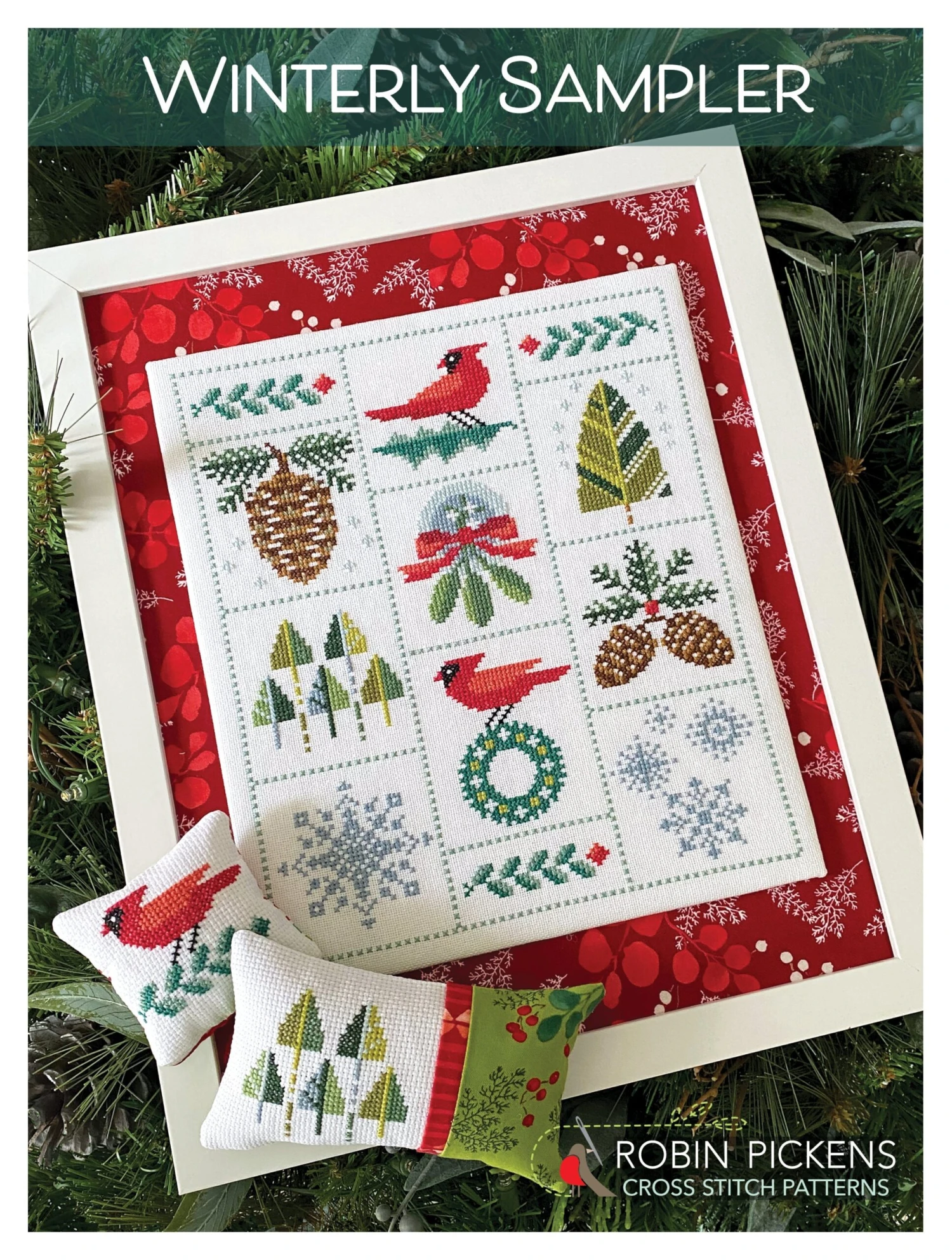 This counted cross stitch pattern by Robin Pickens features a collection of winter motifs. You can stitch them together and frame as festive wall art, or use the motifs individually for smaller projects.