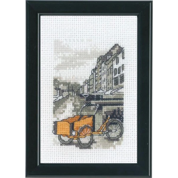 Travel to beautiful Copenhagen with this cross stitch kit designed by Permin of Scandinavia. The design features a city scene in a mostly monochromatic palette with a pretty pop of color.Â